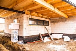 Neodborné uložení traverz v průjezdu. Obě traverzy v průjezdu, sloužící jako podpora střešnách trámů, jsou uloženy na dřevě, namísto na věnci.